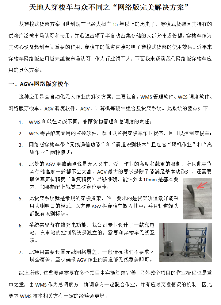 天地人穿梭車(chē)與眾不同系列之“網(wǎng)絡(luò)版完美解決方案”