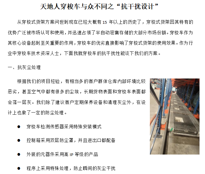 天地人穿梭車與眾不同系列之“抗干擾設計”
